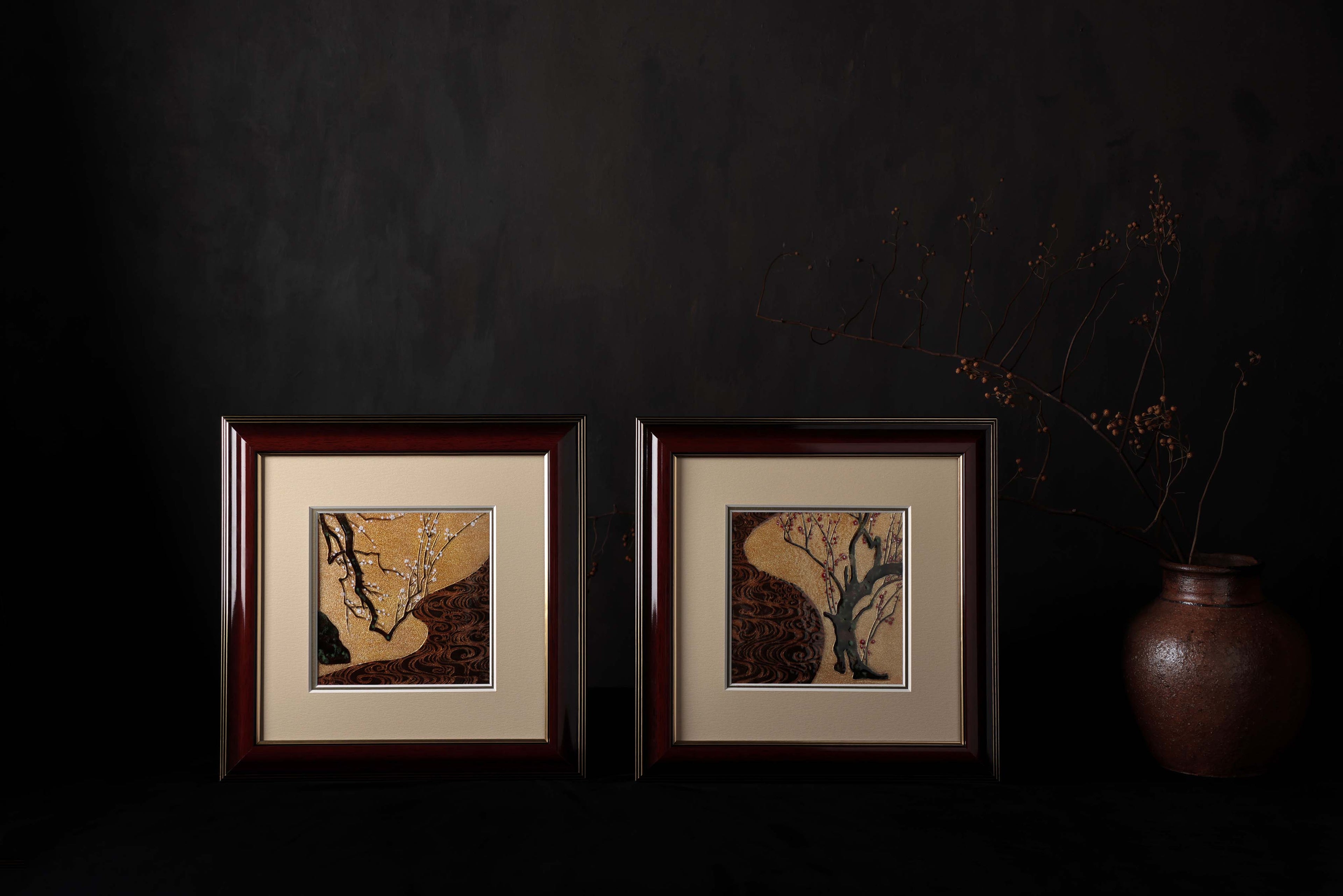 日本画や日本の風景、和花などをモチーフとした七宝絵画です。