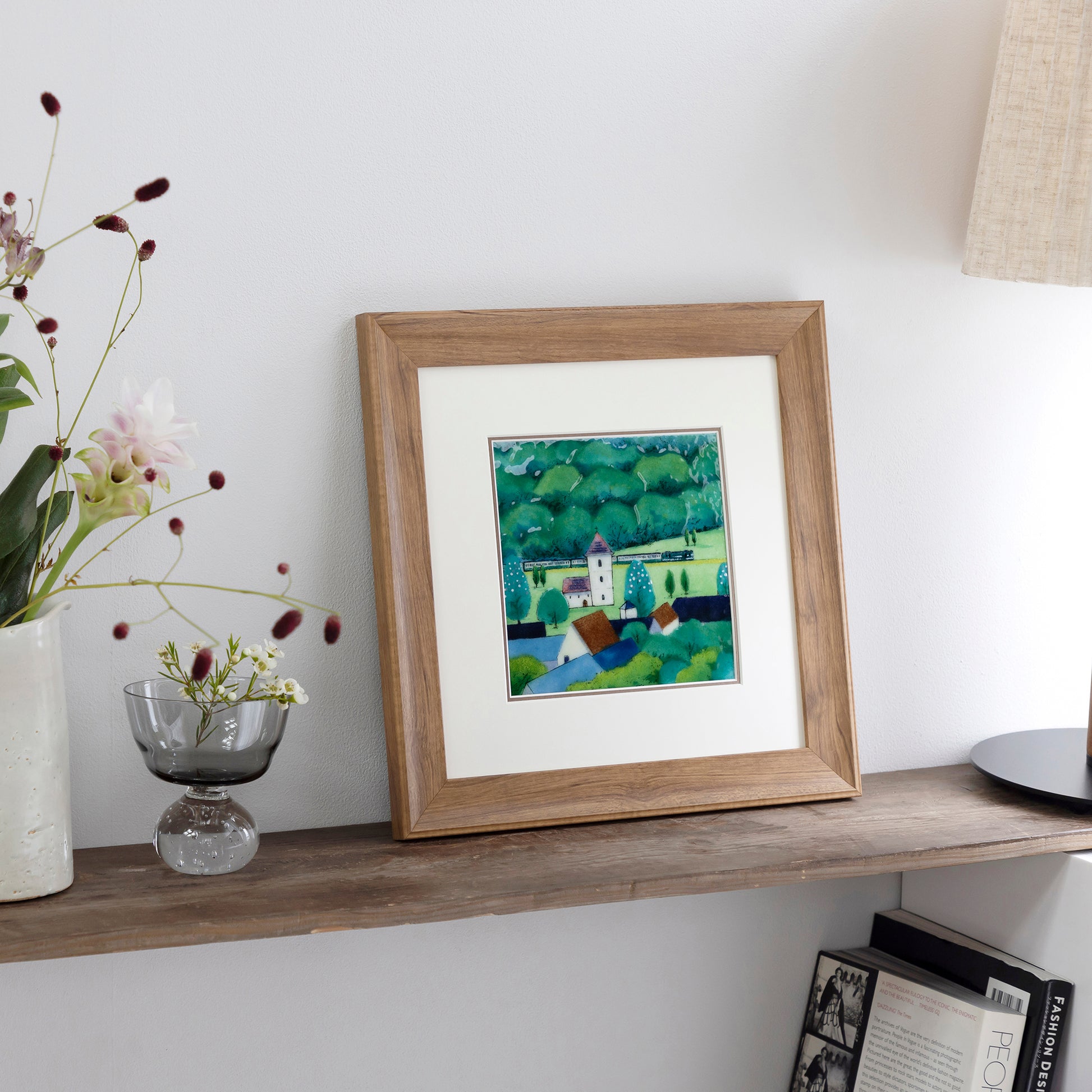 ナチュラルな木目の額は白い壁とも相性が良く、お部屋をナチュラルで明るい雰囲気にしてくれます。