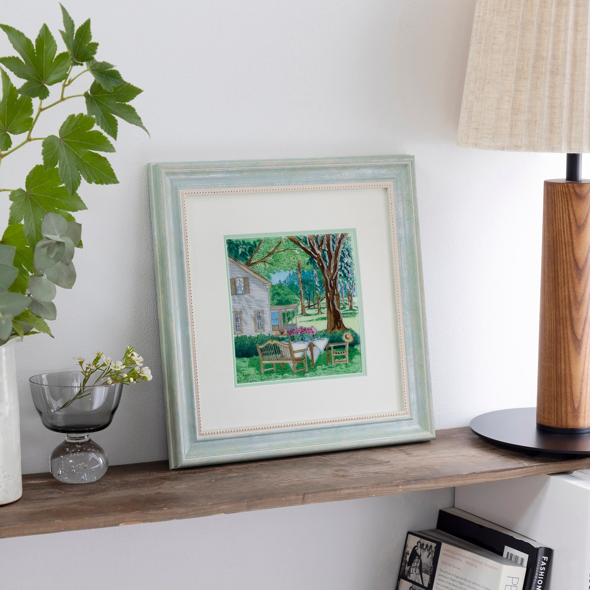 額にもこだわっており、明るいパールブルーの額を使っています。
