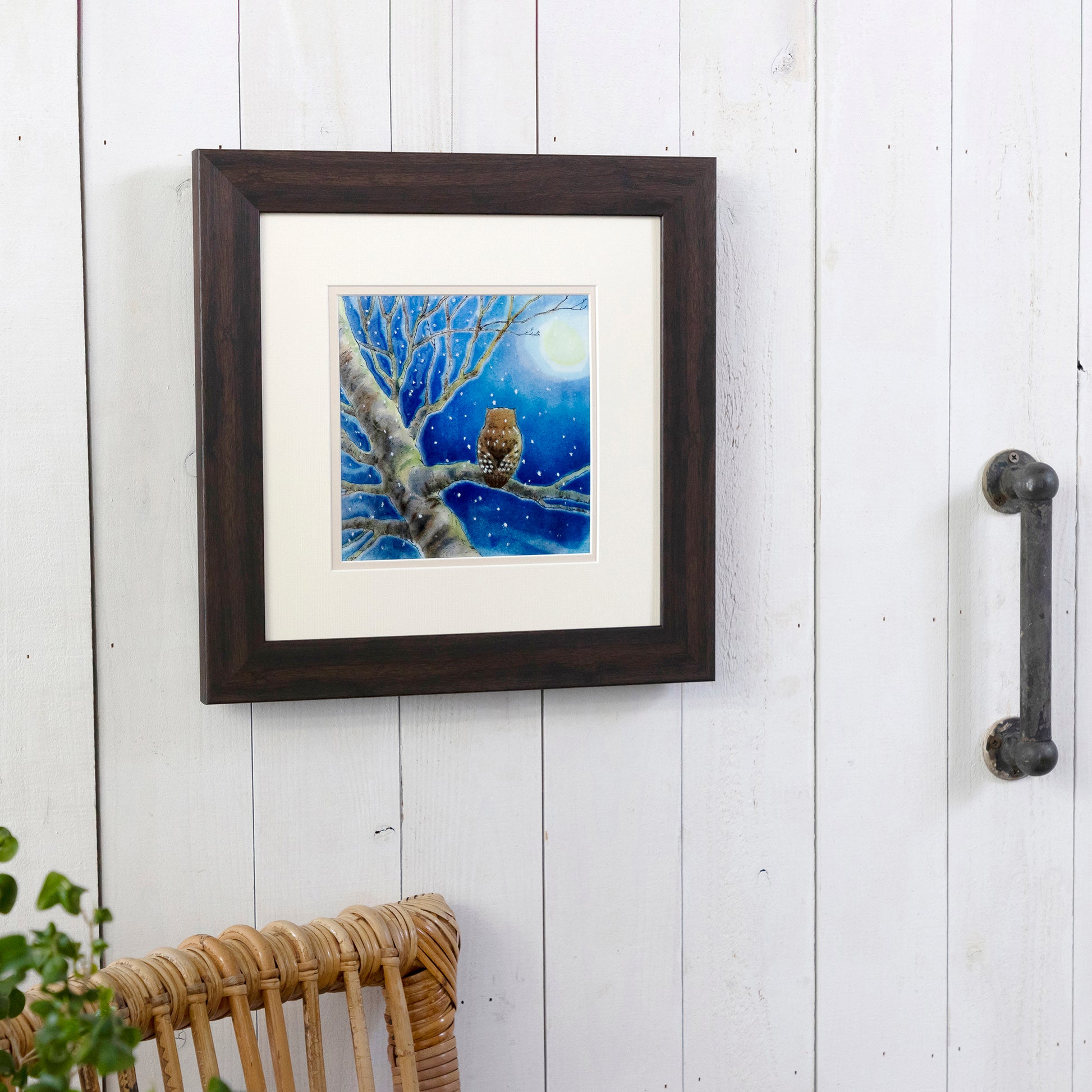 落ち着いたダークブラウンの額はどんな色の壁とも相性が良く、部屋の雰囲気を変えてくれます。