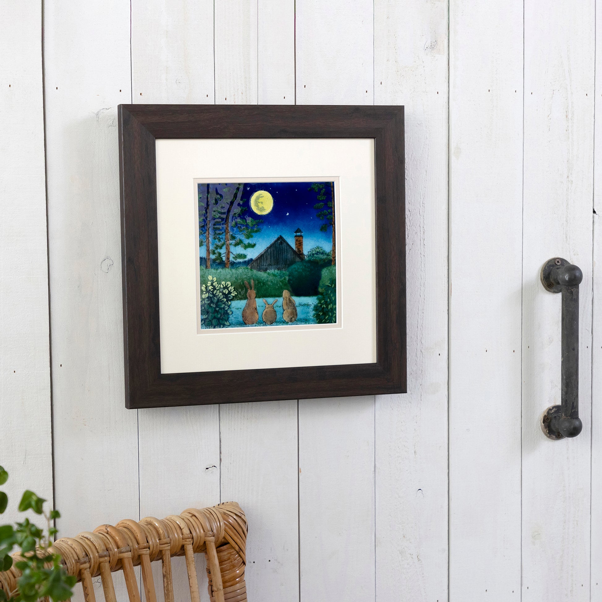 額にもこだわっており、焦げ茶色の木目の存在感のある額を使っています。