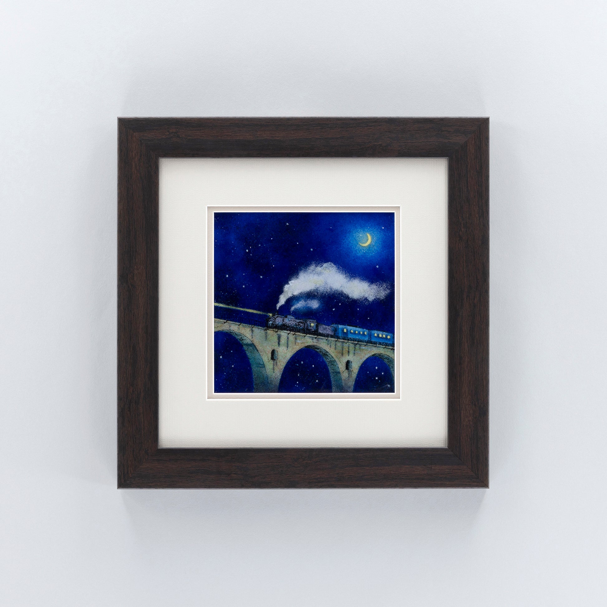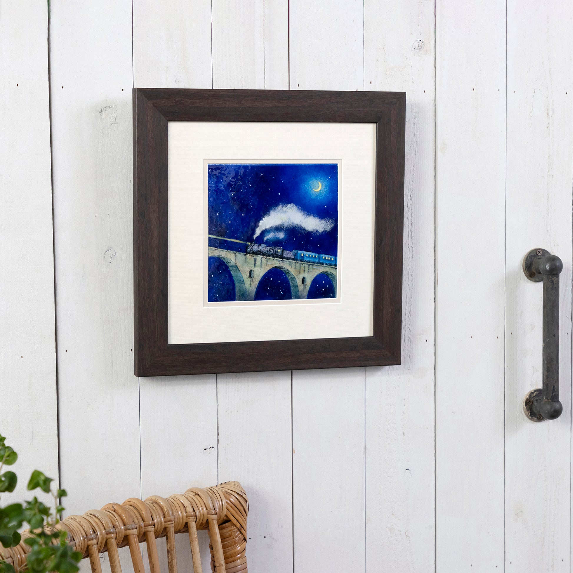 額にもこだわっており、焦げ茶色の木目の存在感のある額を使っています。